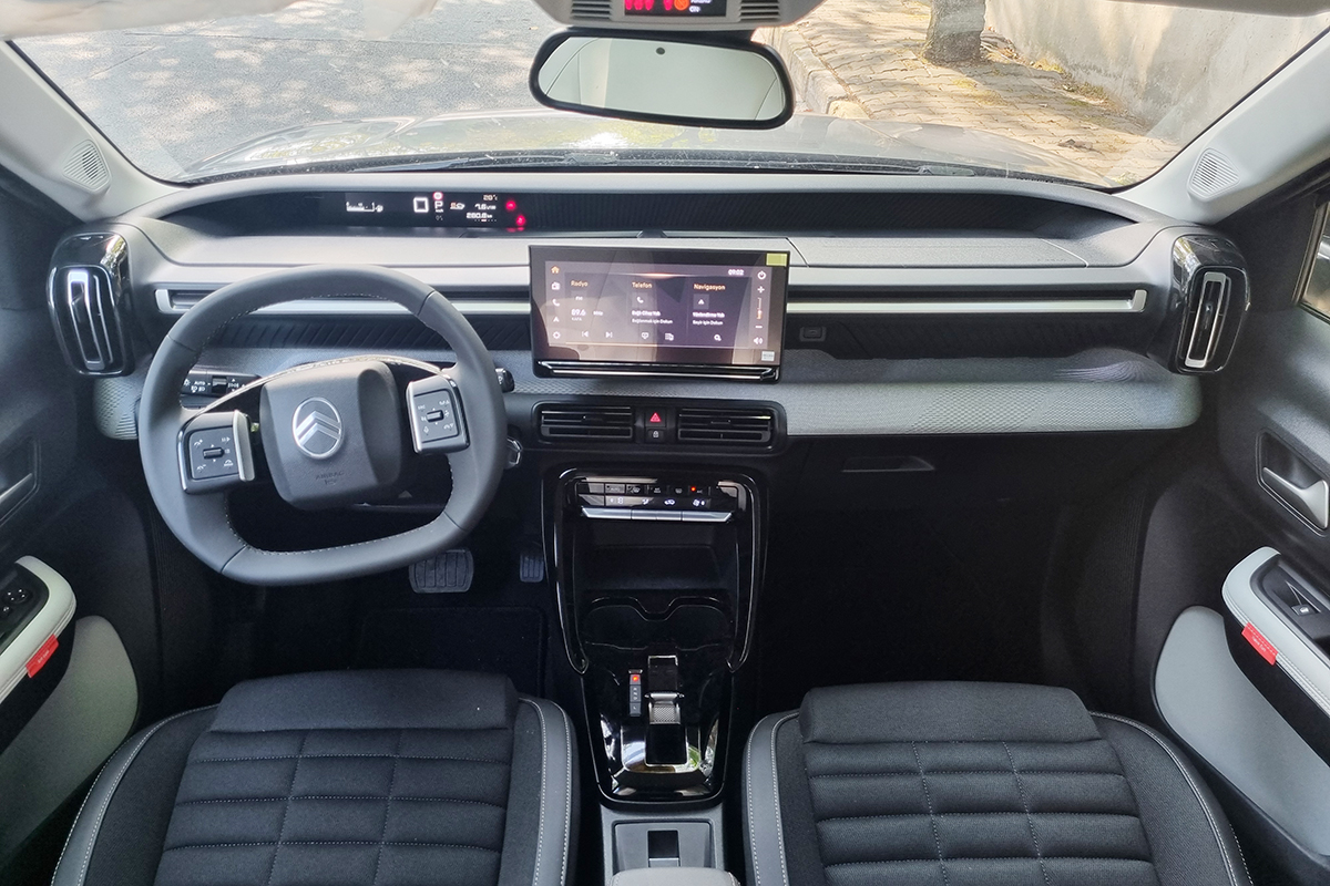Yalnız burada söylemeden geçemeyeceğiz, multimedya ekranın arayüzü ve kullanış kolaylığı günümüz teknolojilerine göre çok basit ve ağır kalıyor. Ulaşılabilir fiyatı ve sunduğu diğer özeliklerine göre göz ardı edilebilecek bir durum diyerek marka ile özdeşleşen konfor özelliklerine geldiğimizde ise Citroen C-ZEN LOUNGE’un modern, ferah ve yenilikçi kabin anlayışı çıkıyor karşımıza. Karakteristik Citroën dikey havalandırma ızgaraları ile tamamlanan yatay ön konsol, üstte teknik ekipmanlar ve altta konfor özellikleri olmak üzere iki seviyeye ayrılıyor. Kanepe tasarımı olarak bilinen bu alan, özel bir kumaşla kaplanıyor. Üst kısımda herhangi bir unsurun olmaması, sürüş konforu ve gelişmiş güvenlik için temiz ve açık bir görüş sağlıyor. Ayrıca yeni Advanced Comfort® koltuklarla da donatılan C3 Aircross yolculuğunuzun her anını keyifli hale getirmeyi başarıyor.