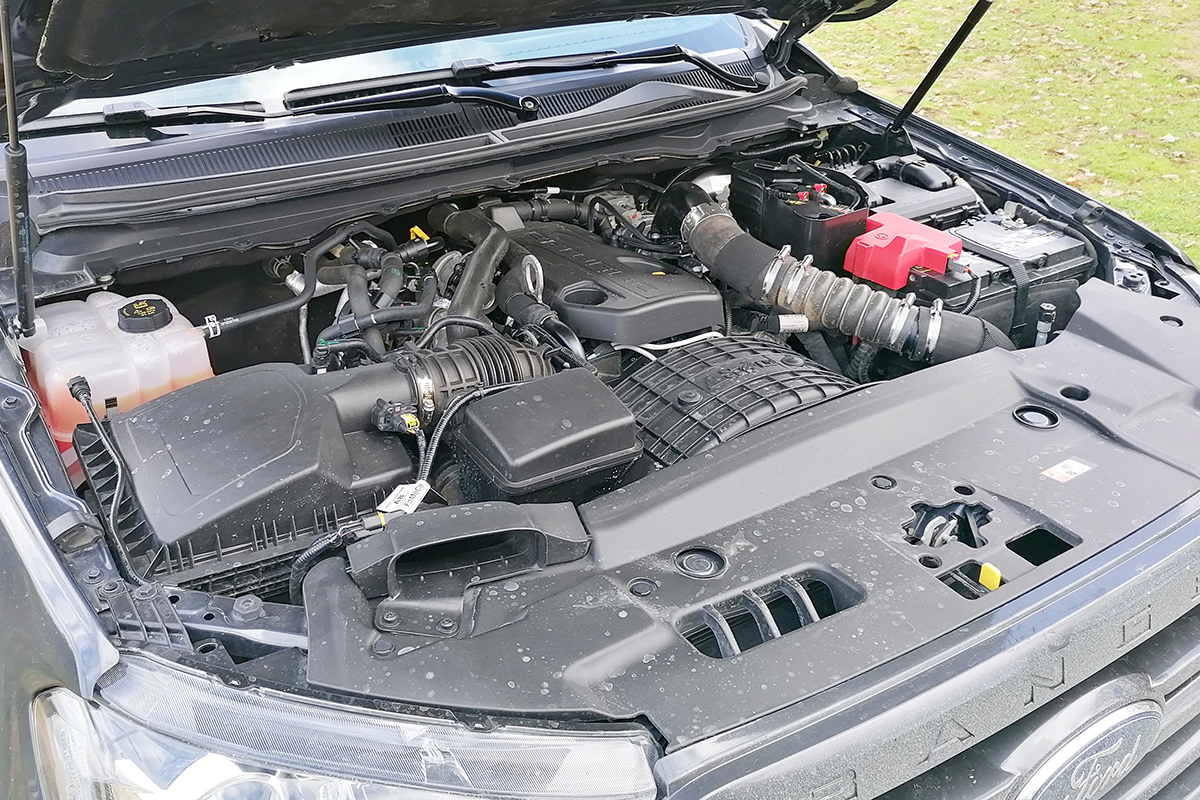 Var olan bütün özellikleri ile direksiyonundayken kendinizi onun kadar güçlü hissettiğiniz Ranger’in kaputunun altında Ford, makyaj operasyonu ile birlikte yeni nesil bi-turbo 2.0 litre Eco-Boost motora görev vermiş. Önceki versiyona göre yüzde 19’a kadar yakıt verimliliği sunan yeni motorda alt devirlerde her iki turbo besleme yüksek tork üretimi için seri çalışıyor. Üst devirlerde küçük turbo devreden çıkarken büyük turbo yüksek güç üretimi için çalışmaya devam ediyor. Ranger’in kalbinde bulunan 1996 cc hacmindeki motor, 213 PS ve 500 Nm tork değerleri sunuyor. Ford Ranger ailesinde ilk kez yeni 10 vitesli otomatik şanzıman kullanılıyor. Dört tekerden çekiş sistemine sahip olan Ford Ranger Wildtrak 0-100 km/s hızlanmasını 10.5 saniyede gerçekleştiriken, maksimum 180 km/s hız yapabiliyor. Fabrika verilerine göre ortalama 7.8 litre yakıt tüketim değerine sahip Ranger Wildtrak, 204 gr/km CO2 emisyon salım değerine ulaşıyor. Optimize edilen kompakt boyutlu turbo besleme sayesinde yeni motor yerini aldığı 2,2 litre hacimli TDCi motora kıyasla özellikle alt devirlerde daha yüksek hava iletimi gerçekleştiriyor ve böylece tüm devir aralıklarında daha canlı ve atak bir sürüş hissi sunuyor.