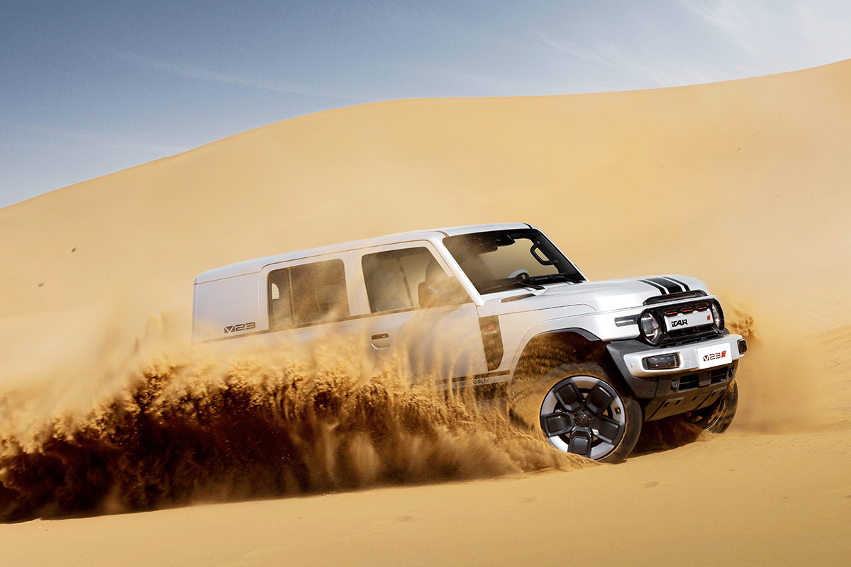 Çöl zirvelerini aşmak, bir aracın genel performansının nihai testidir. Bu tip testler güç, dört çeker sistemi, şasi dayanıklılığı, elektronik kontrol ve ısı yönetimi gibi birçok sistemi sınar. Genellikle saf elektrikli kutu tipi araçların “zarif ama dayanıklı değil” olarak algılandığı bir ortamda, iCAUR V23 olağanüstü ürün gücüyle öne çıkıyor.