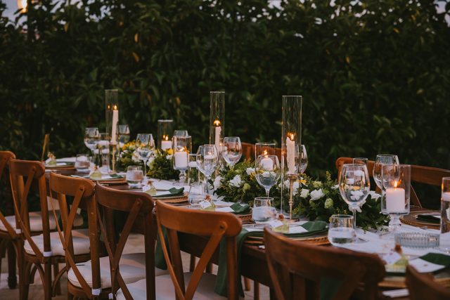 Parma Sole’de kokteyl ve nikah seremonileri bahçedeki meyve ağaçlarının gölgesinde gerçekleşiyor, özenle hazırlanan şık sofralar vadiye bakan havuz başında kuruluyor.