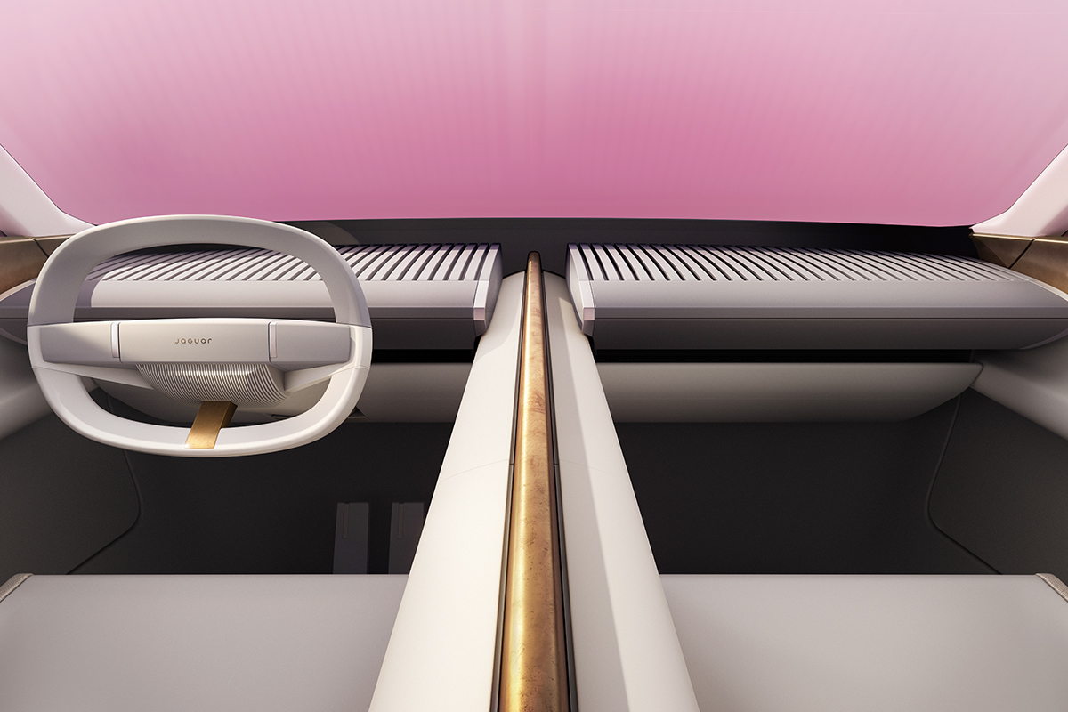 Jaguar İç Tasarım Yöneticisi Tom Holden: “Kullanılabilir teknolojiler, tıpkı dışarıda olduğu gibi iç mekanda da ön plana çıkıyor. Ekranlar gösterge panelinde sessizce kayarken elektrikli eşya koyma alanları, istenildiğinde yumuşak bir şekilde açılarak gizli renk yansımalarını ortaya çıkarıyor. Teknolojinin mimariye hakim olmasındansa modern lüks deneyimi geliştirmesi gerektiğine inanıyoruz ve bu felsefenin bir örneği olarak gösterge panelinin merkezindeki dijital ekranı sunuyoruz.” diyor.
