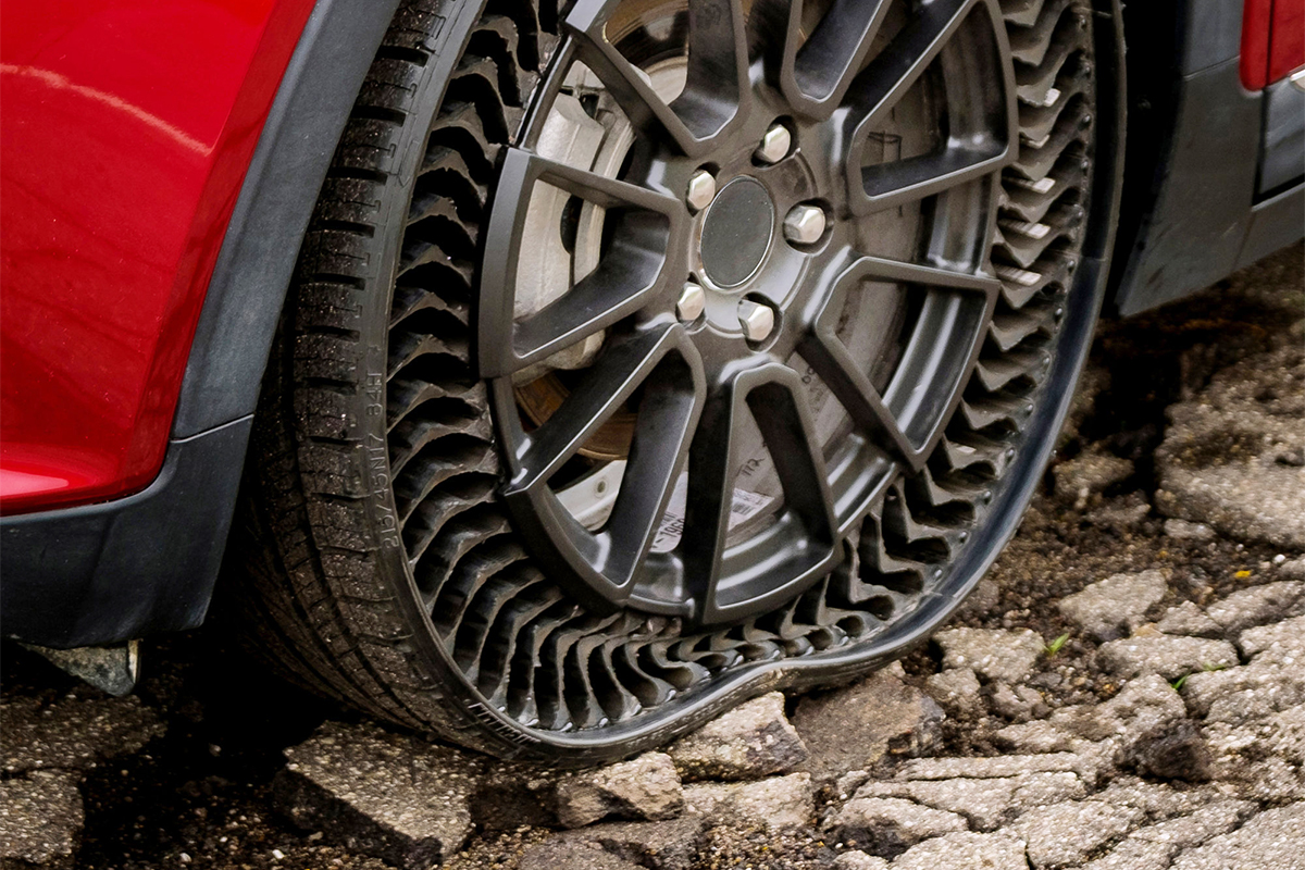 Dünya çapında yaklaşık 200 milyon lastik her yıl patlama, yol risklerinden kaynaklanan hasarlar veya dengesiz yıpranmaya yol açan uygunsuz hava basıncı sonucunda erkenden hurdaya çıkıyor. Dünyanın en büyük lastik üreticisi Michelin, General Motors ile birlikte geliştirdiği havasız lastik teknolojisi Uptis ile bu sorunu ortadan kaldırıyor.