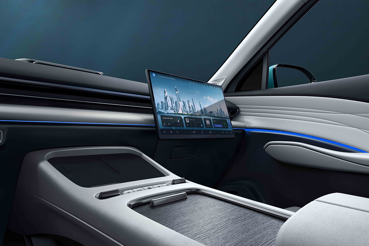 Sınıfının tek ultra sessiz VIP kabininde, ergonomiye dayalı koltukların, orta konsolun ve kapı panellerinin çizgileri doğal ve akıcı bir şekilde birbirine bağlanıyor. Bu da yolculara uyumlu ve bütünlüklü bir görsel konfor algısı sunuyor. Ayrıca iç mekân, siyah-beyaz renkte kontrast bir tasarımı benimsiyor. Bu da sade ama fütüristik bir atmosfer yaratarak, kullanıcıları adeta teknolojik bir uzay gemisindeymiş gibi hissettiriyor ve bilimkurgu dolu bir yolculuğa çıkarıyor. Bununla birlikte kabin, statik, ritmik ve nefes alma modları sunan 256 renkli ambiyans aydınlatma sistemiyle donatılıyor. Bu sistem, farklı sürüş senaryolarına göre iç aydınlatma atmosferini otomatik olarak ayarlıyor. Ambiyans aydınlatması araç içindeki müziğin ritmiyle ve ışıkların değişimiyle birleştiğinde, adeta akıllı bir karnaval müzik partisi başlatıyor.