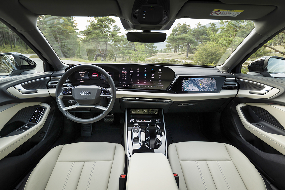 Araca girildiğinde yeni ekranlar hemen dikkat çekiyor: 11,9 inç Audi sanal kokpit plus ve kavisli tasarıma sahip 14,5 inç Audi MMI panoramik ekran ve standart olarak sunulan 10,9 inç MMI ön yolcu ekranı da Dijital Sahneyi tamamlıyor. Geliştirilen bu konseptte, ergonomi ve sürücü odaklı basit kullanım temel unsurlar olarak öne çıkıyor.