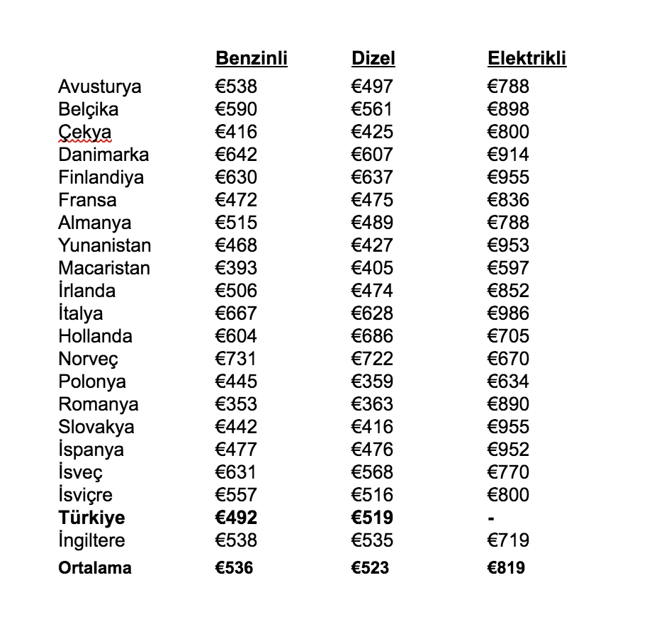 Türkiye’de dizel aracın aylık maliyeti 519 Euro!