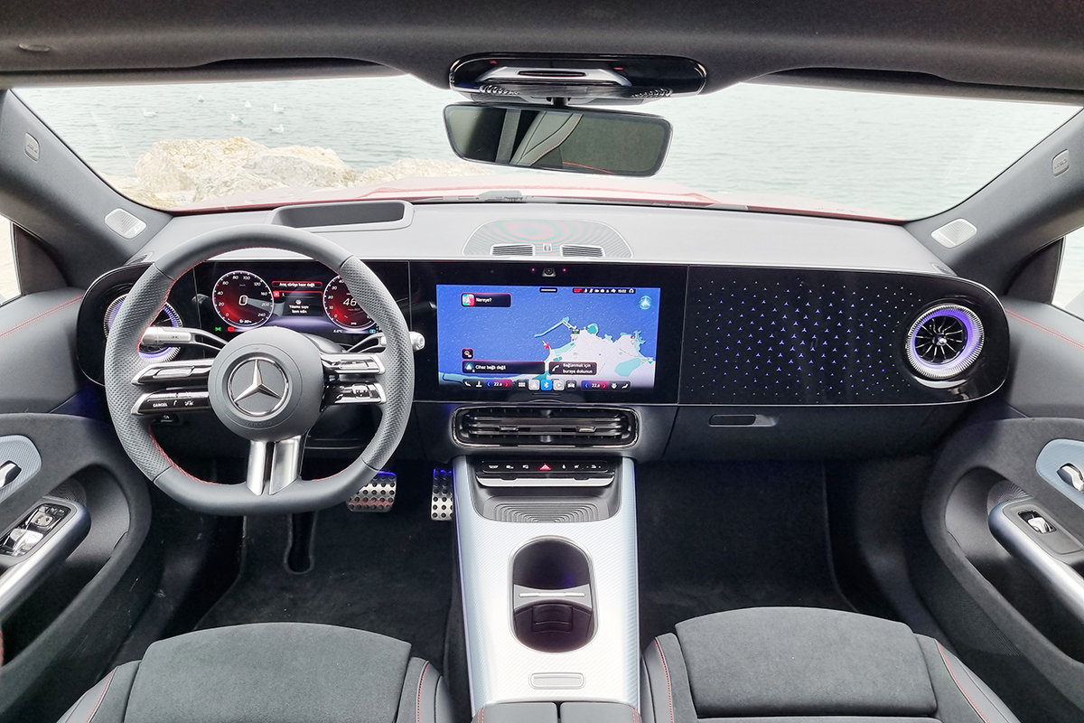 Dış görünümüyle bile sizi etkisi altına almayı başaran yeni Mercedes-Benz CLA’nın içerisine geçtiğinizde ise sizi, teknolojik, sezgisel ve kalite kokan bir yaşam alanı karşılıyor. CLA’nın iç mekânı bu araç sınıfında yeni bir lüks deneyimi sunarak ikonik yüksek teknoloji öğelerine odaklanılıyor. En dikkat çekici unsur, Türkiye’de opsiyonel olarak sunulan, iç mekânın tamamına yayılan MBUX Superscreen. Büyük cam yüzeyin altında 26 cm (10,25 inç) dijital gösterge ekranı ve 35,6 cm (14 inç) merkezi ekran bulunuyor. MBUX Superscreen, ön yolcu için 35,6 santimetrelik (14 inç) ek bir ekranla opsiyonel olarak sunulacak. Eğer ön yolcu ekranı opsiyonu araçta yoksa bu alanda cam görünümünü devam ettiren yıldız desenli grafiklere sahip dekoratif süsleme sunuluyor. MBUX Superscreen’in her iki ucuna entegre edilmiş yuvarlak hava çıkışları, modern ve sportif izlenimi güçlendiriyor. Yüksek teknolojiye sahip düz bir merkezi hava çıkışı, geleneksel ızgaraların yerini alıyor. Diğer bir dikkat çekici özellik ise baş üstü ekran. Türkiye’de standart olarak sunulan sanal ön gösterge paneli sayesinde sürücü, aracın yaklaşık 2,8 metre önünde yüzen, sanal 31 santimetrelik (12,2 inç) ekrandan araç ile ilgili bilgilere ulaşabiliyor. Yeni CLA’nın navigasyon deneyimi ilk kez Google Maps verilerine dayanıyor. Electric Intelligence teknolojisine sahip Mercedes-Benz navigasyonu, en hızlı ve en verimli rotayı belirlerken şarj duraklarını da dinamik olarak planlıyor.
