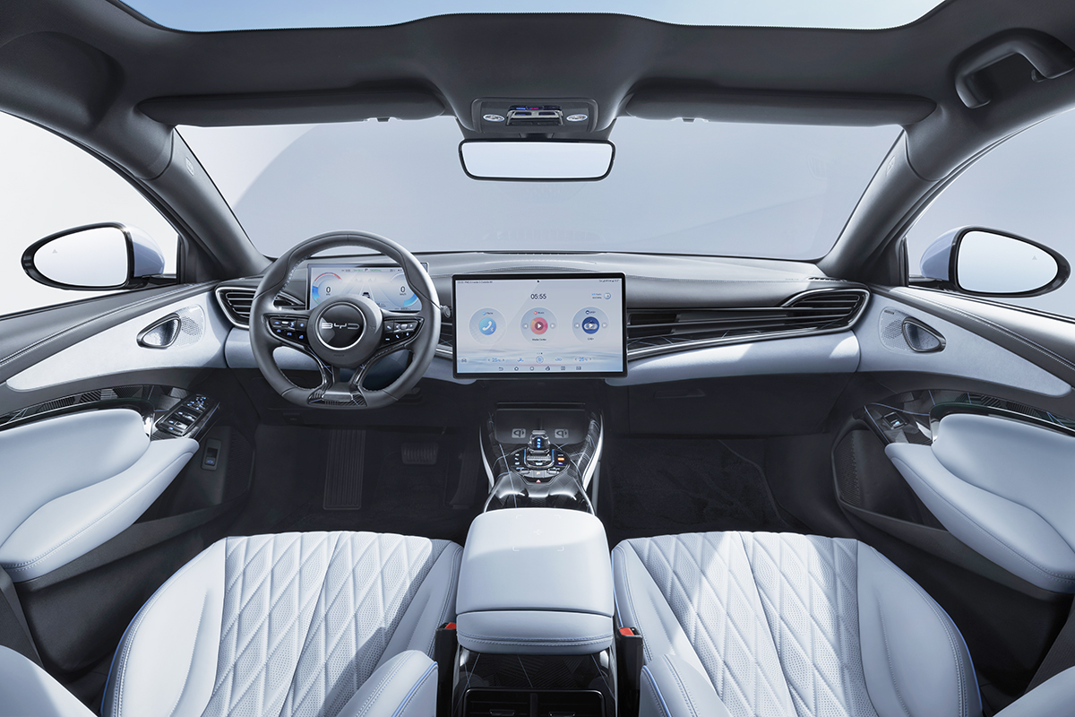 Teknolojiden ödün vermeyen yeni BYD SEAL Design, sahip olduğu iç mekan özellikleriyle de dikkat çekiyor. Elektrikli dönebilir 15.6 inç dokunmatik multimedya ekranı, Apple CarPlay ve Android Auto uyumluluğu, panoramik görüş kamerası, ısıtmalı deri direksiyon simidi, havalandırmalı ve elektrikli ayarlanabilir ön koltuklar ve 12 hoparlörlü Dynaudio premium ses sistemi gibi donanımlar, SEAL Design’ı sınıfının üstünde bir elektrikli sedan haline getiriyor.
